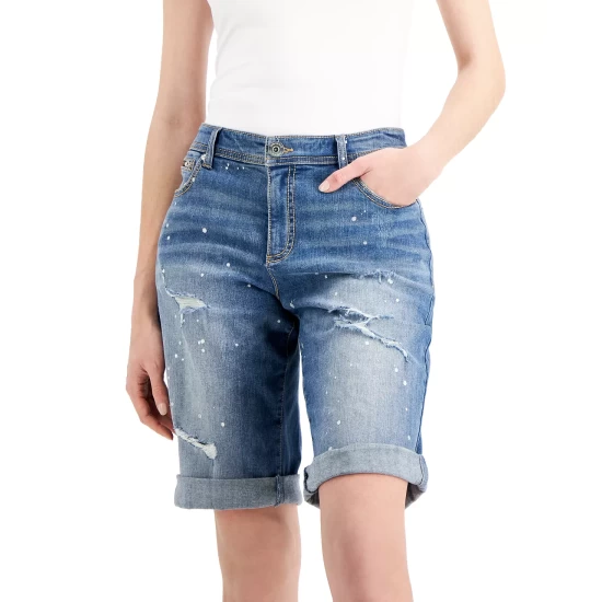 One of the most relaxed looks in fashion, these I.N.C. International Concepts Bermuda shorts take it to another level of leisure with rips and a cuffed hem. Their wash is faded out, so they always look well-loved.