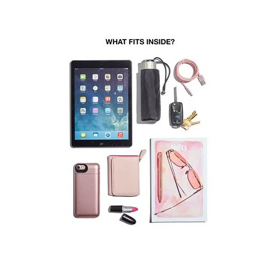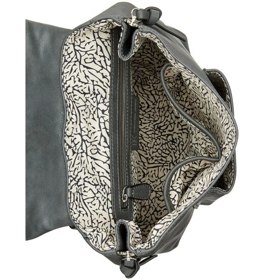 - 1 interior slip pocket under flap, 2 slip pockets & 1 zip pocket