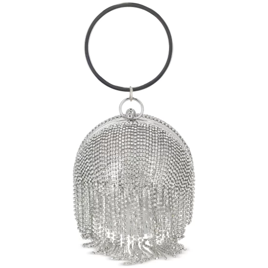 Turns heads while you shimmer and shine with the Fringe Ball Bangle Clutch by INC International Concepts.