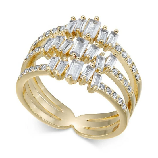 Shapely baguette stones and petite crystals outline this three-row stack ring from I.N.C. International Concepts.