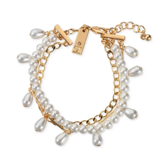 INC International Conceptsยฎ brings you a contemporary twist on a classic with this multi-layer bracelet, consisting of a traditional imitation pearl strand and multiple gold-tone chains.
