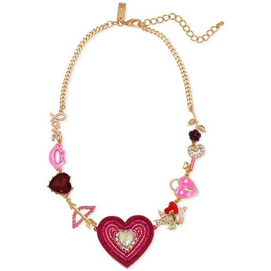 Fun charms feature a boldly beautiful heart on this INC International Concepts statement necklace.