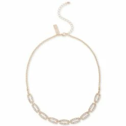 Nine large pavé-lined links are showcased on this commanding INC International Concepts statement necklace.