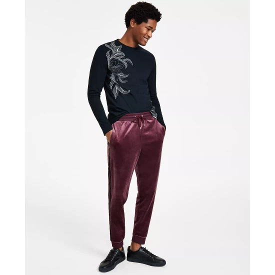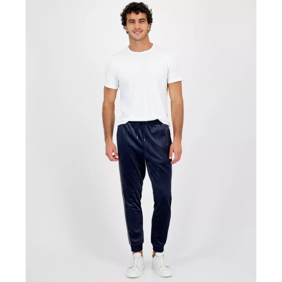 Let your laid-back style shine with the shimmering velour and sparkling sides stripes of these incredibly comfortable joggers from I.N.C. International Concepts®.