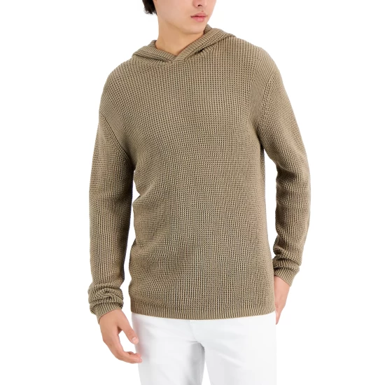 INC International Concepts highlights wardrobe staples with the modern fit of this hooded sweater, featuring an allover acid wash.