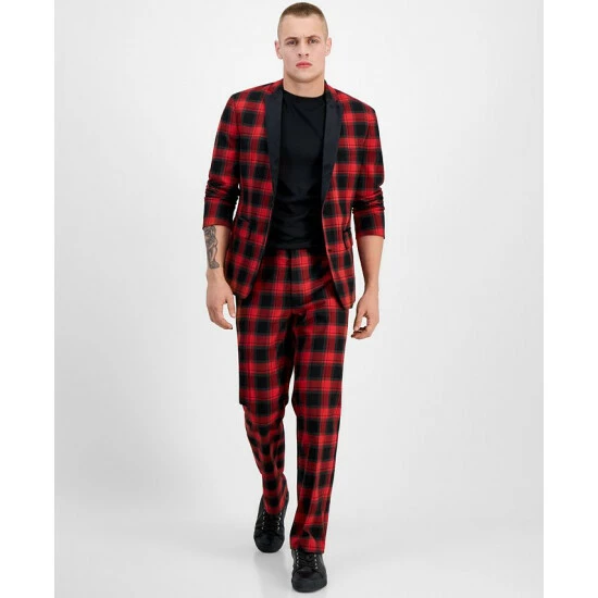 Give your formal look a festive feel with the rich plaid featured on this Alain slim-fit suit jacket from INC International Concepts.