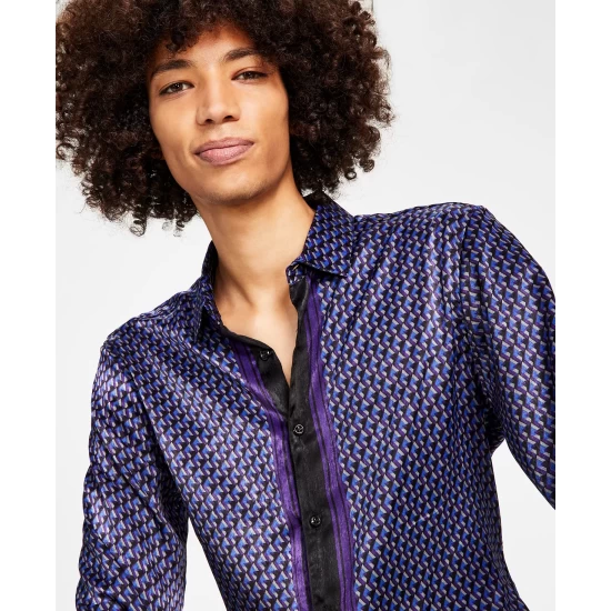 Give your look and upgrade with the eye-catching geometric pattern featured on this Ben button-down shirt from INC International Concepts.