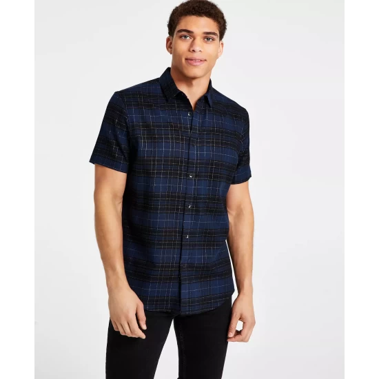 For casual style that shines, choose the sparkling metallic accents lighting up this laid-back plaid button-down from INC International Concepts.