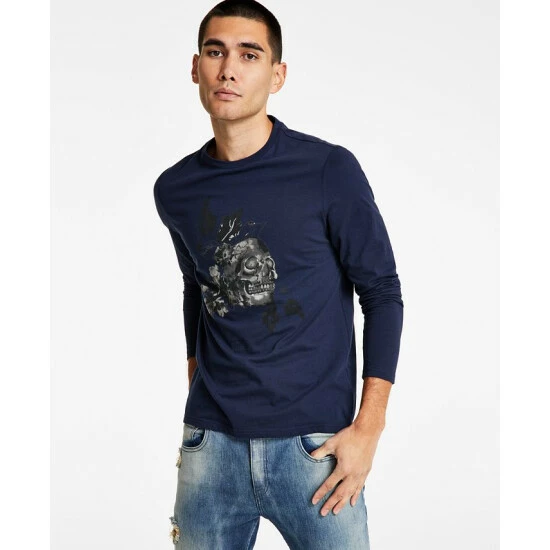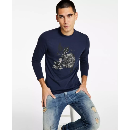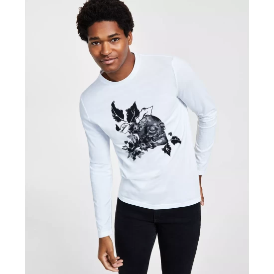 Add a little edge to your laid-back look with the attention-grabbing flower-adorned skull graphic printed at the front of this Devon cotton T-shirt from INC International Concepts.