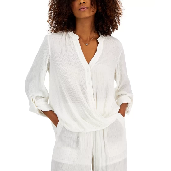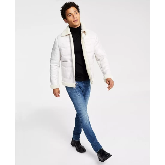 Warm, cozy and super stylish, the Flynn jacket from INC International Concepts is trimmed with faux fur at the collar, placket, cuffs and hem.