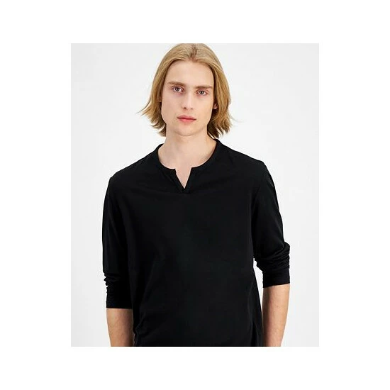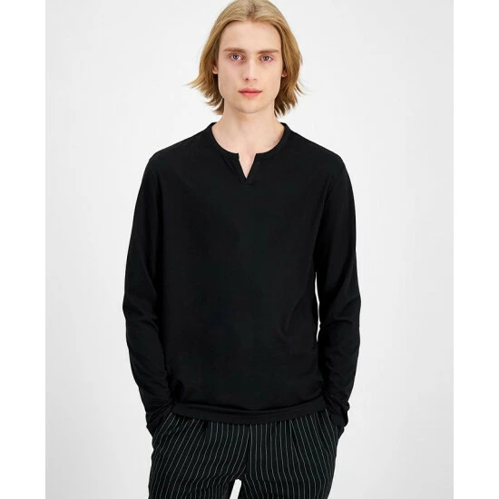A split neckline makes for a unique, casual cool look on this soft long-sleeve t-shirt by INC International Conceptsยฎ.