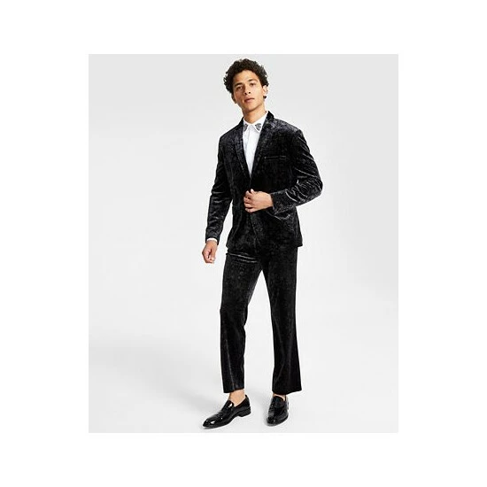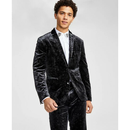 Light up the room at your next refined rendezvous with the shimmering velvet and stylish paisley pattern of this slim-fit suit jacket from INC International Concepts.