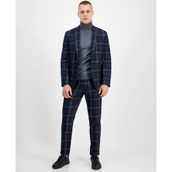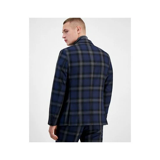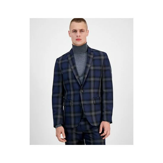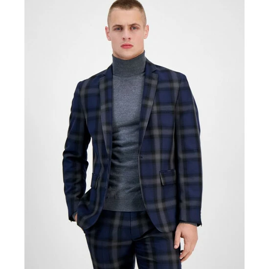 Keep your sophisticated look stylish with the streamlined silhouette and shadow plaid of this suit jacket from INC International Concepts.
