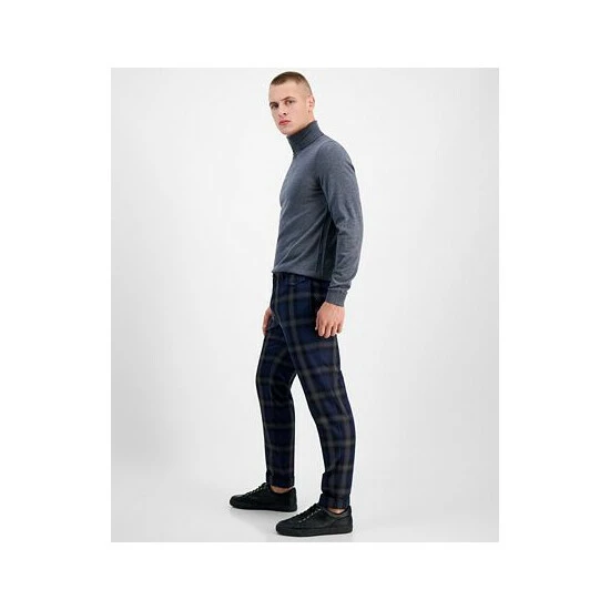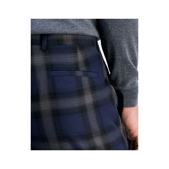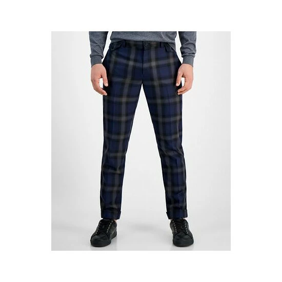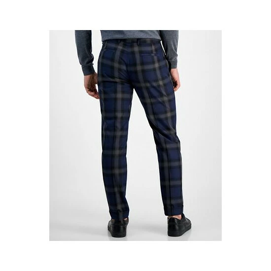 Keep your sophisticated look stylish with the streamlined silhouette and shadow plaid of these suit pants from INC International Concepts.