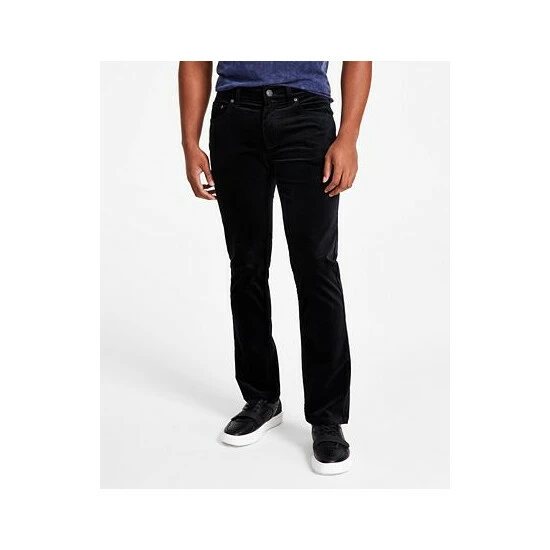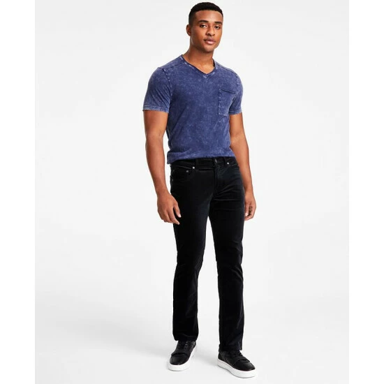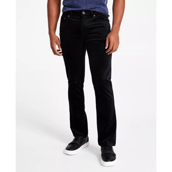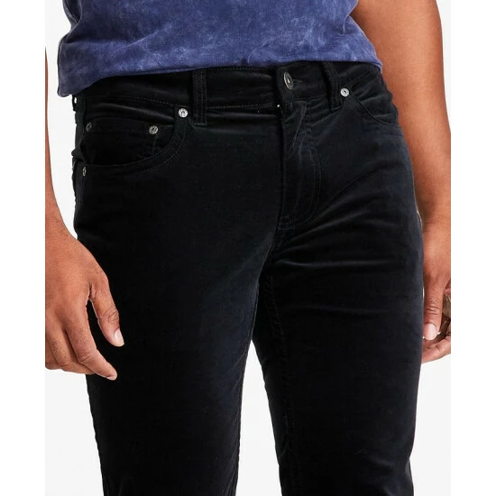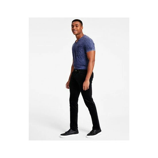 A touch of stylish texture to your street style with the rich velour fabric of these slim straight-fit jeans from INC International Concepts.