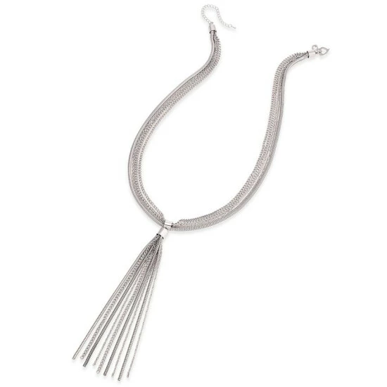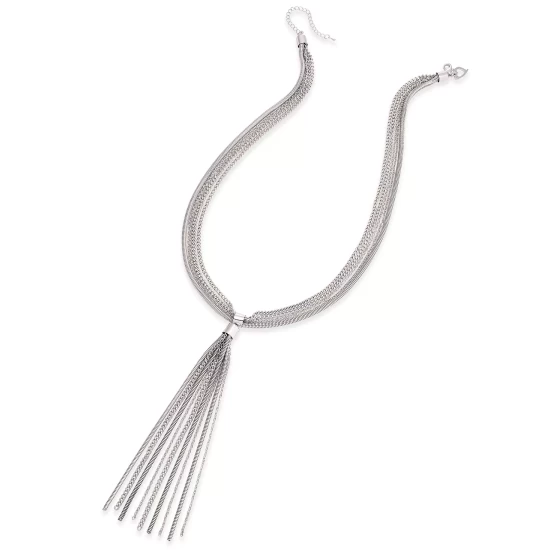 A selection of chains are gathered together to create the fashionable tassel of this long INC International Conceptsยฎ lariat necklace.
