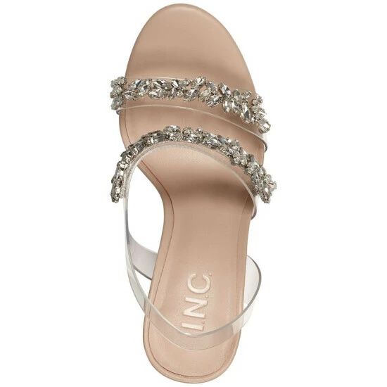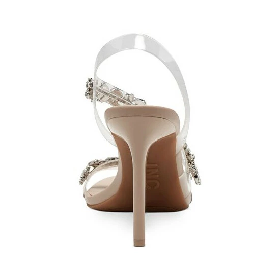 Curving asymmetrical lines and shimmering rhinestones combine atop sleek stiletto heels in the pretty Nashbelle sandals from INC International Conceptsยฎ.