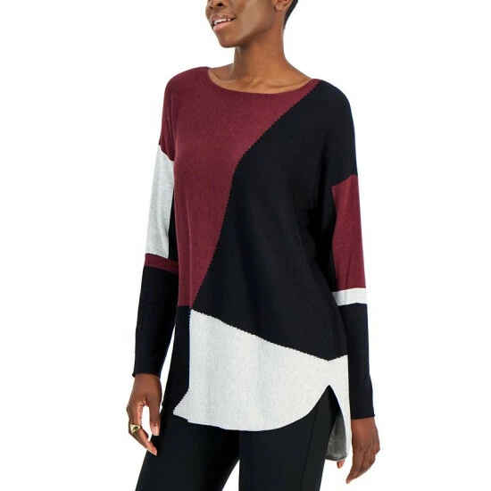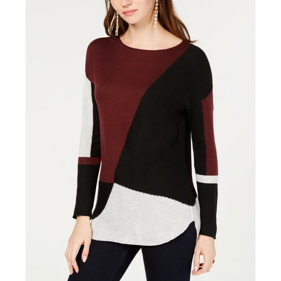 A chic colorblocked design puts the perfect finishing touch on this shirttail sweater from INC International Conceptsยฎ.