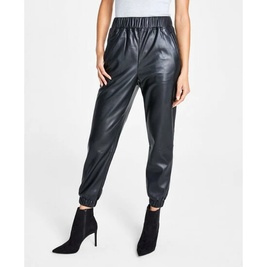 A slick spin on a sporty silhouette, these petite faux-leather joggers deliver an edgy look from INC International Conceptsยฎ.