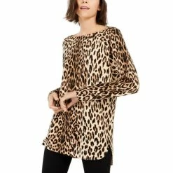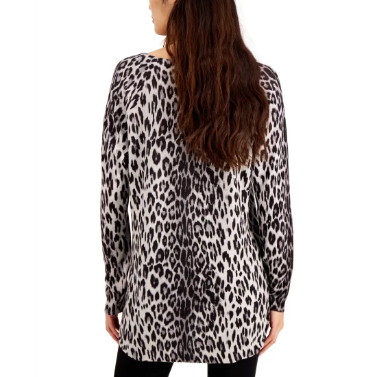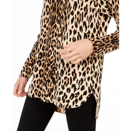 Show stylish instincts with this petite INC International Conceptsยฎ tunic sweater featuring a chic leopard print and a flowing shirttail hem.