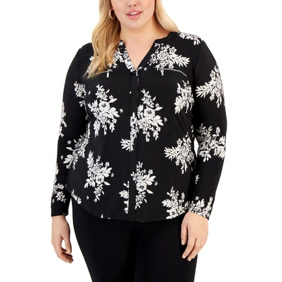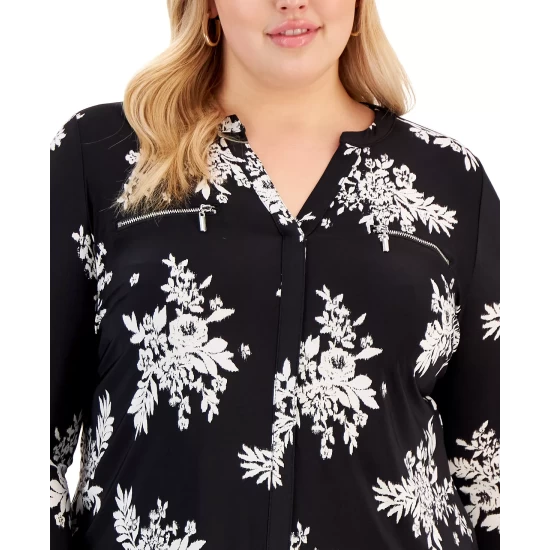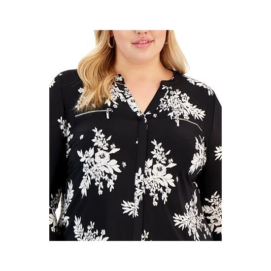 Keep it chic in this zip-pocket plus size shirt from INC International Conceptsยฎ.
