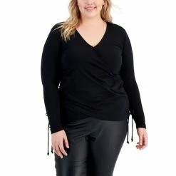 Side-ruching lends a customizable look to this plus size top from INC International Concepts®, the party-ready look your closet needs.