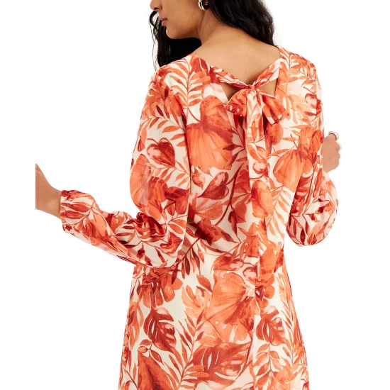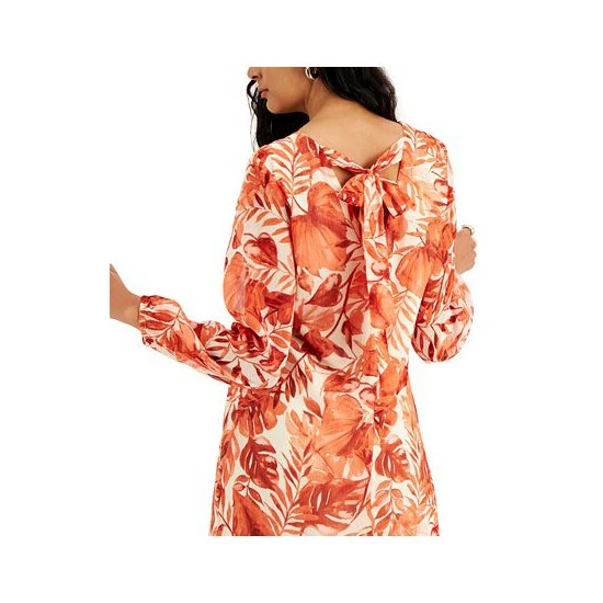 Lightly textured and brightly printed, this chiffon shift’s sleek V-back is smartly finished with a flowy bow. The streamlined look delivers desk-to-dinner style from INC International Concepts®.