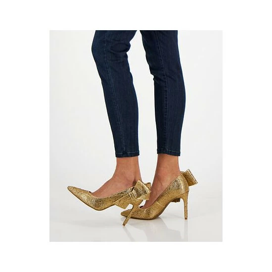 - Bow detail at heel; allover rhinestone detailing