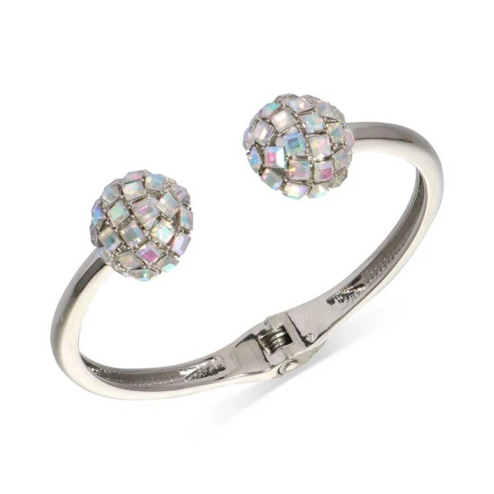 Square crystals shine from the disco ball tips that decorate this groovy INC International Concepts cuff bracelet.
