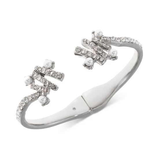 PavΓ© crystal and imitation pearl adorned stick designs decorate each end of this INC International Concepts cuff bracelet.