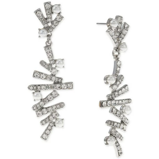 Pavé and imitation pearl accented sticks are arranged in a stylish way on these linear drop earrings by INC International Concepts.