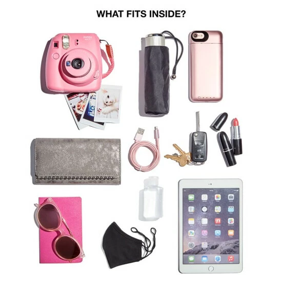 - Silver-tone hardware, 1 back zip pocket