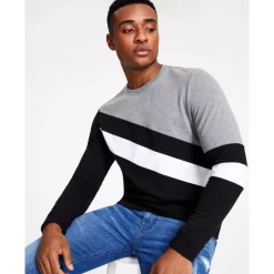 The epitome of sophistication. A toile-printed trench coat breaks up the crisp white-monochrome styling of INC International Conceptsยฎ’ nautical-inspired trousers and V-neck top.