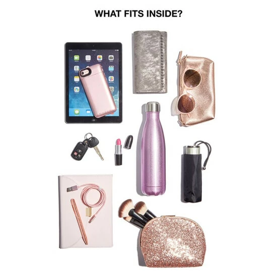 - Silver- or Gold-tone exterior hardware; varies by color, footed bottom & 1 zip pocket on back