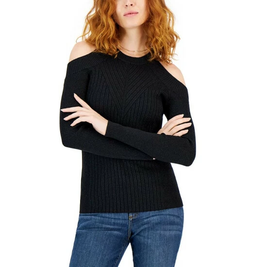 Show off a hint of skin in I.N.C. International Concepts’ cold-shoulder sweater, a surprisingly glamorous design decorated with a glittering metallic ribbed knit.
