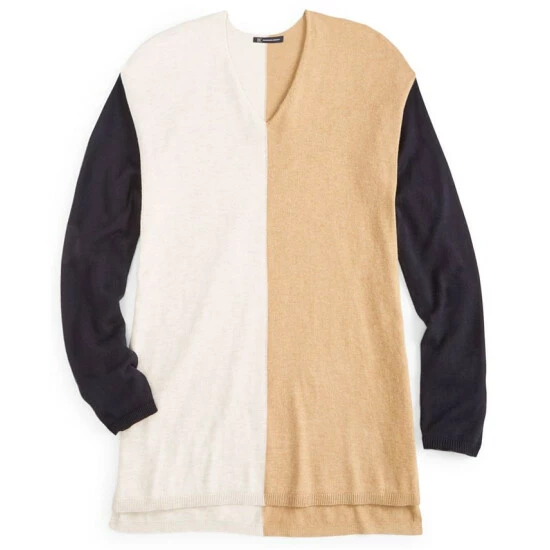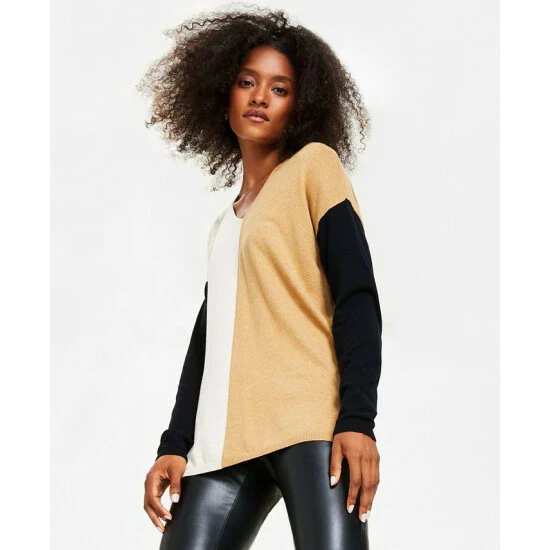 A cool colorblocked design pairs with a step hem for a modern, effortless look with this pullover tunic sweater from INC International Concepts®.