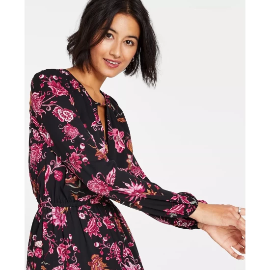An effortless dress for any occasion. This INC International Conceptsยฎ style slips on easily and brightens up a room with its bold floral print.