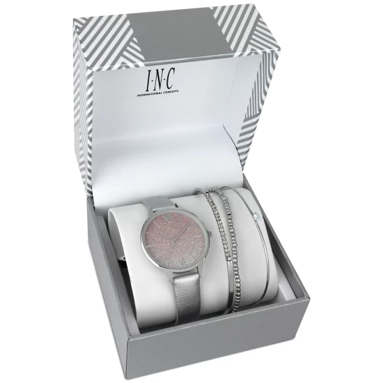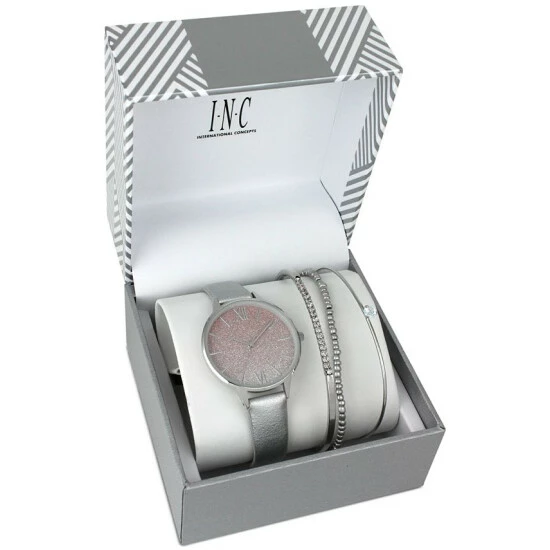 Glamour takes center stage when you flaunt this glittery watch and three matching crystal bracelets. From INC International Concepts. Style #100162876WA