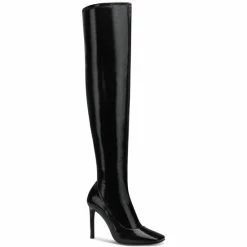 A stiletto heel adds extra cool factor to these ultra-sleek square-toe over-the-knee boots from INC International Concepts®.