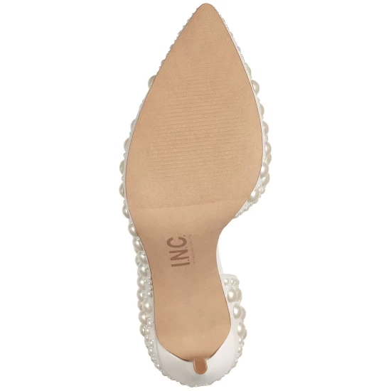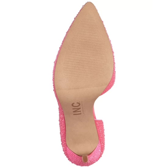 INC International Concepts’ Kenjay pumps add luxe intrigue to your evening look in a sultry d’Orsay silhouette studded with imitation pearls and rhinestones.