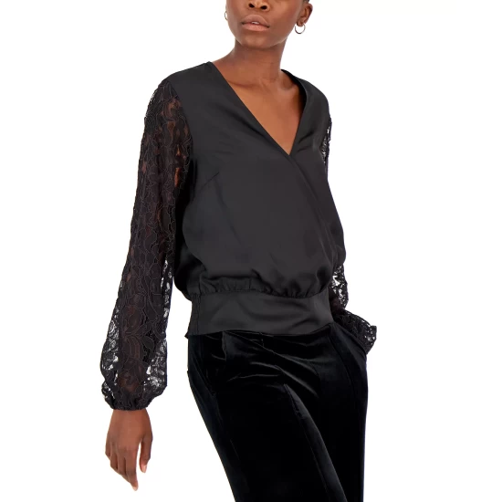 Delicate lace sleeves frame this women’s top from INC International Concepts, a charming addition to any well-rounded closet.
