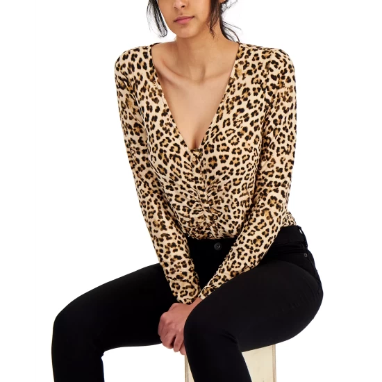 Perfectly ruched at the front with decorative buttons, this printed V-neck top from I.N.C. International Conceptsยฎ will give your wardrobe a fashion boost.