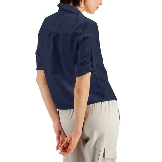 INC International Conceptsยฎ puts a contemporary spin on this cuffed-sleeve blouse with a breezy twisted hem.