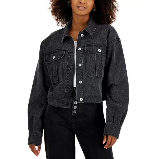 Layer-on with style in this women’s trucker jacket from INC International Conceptsยฎ, featured in a printed design for a chic finish.