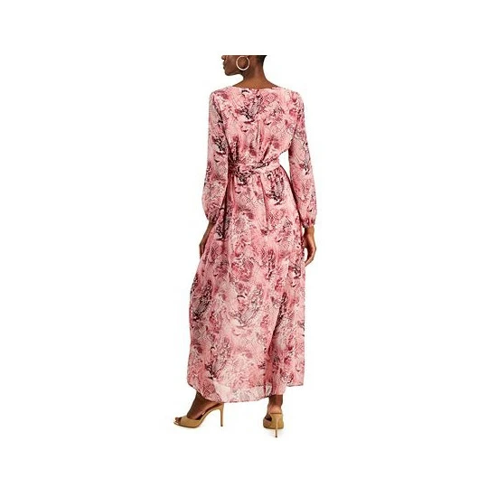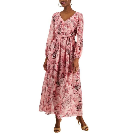 A sleek snake-like print adorns this full and flowing maxi dress by INC International Concepts, finished at the waist for a sash belt for a go-to form-flattering look.