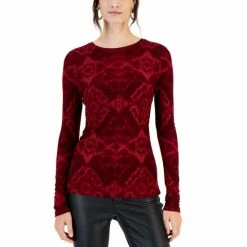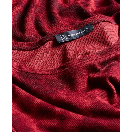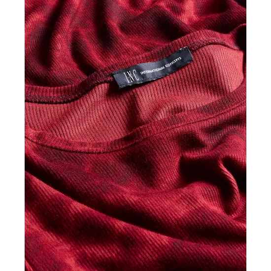 Bold prints sit atop a great ribbed texture on this crewneck top from INC International Concepts.