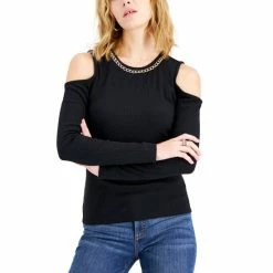 Embellished with a chain at the neckline, this ribbed, cold-shoulder top from I.N.C. International Conceptsยฎ elevates your style.