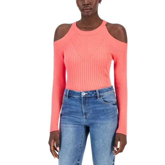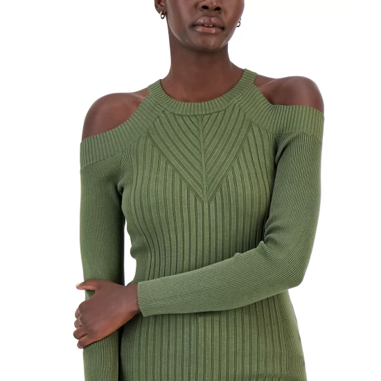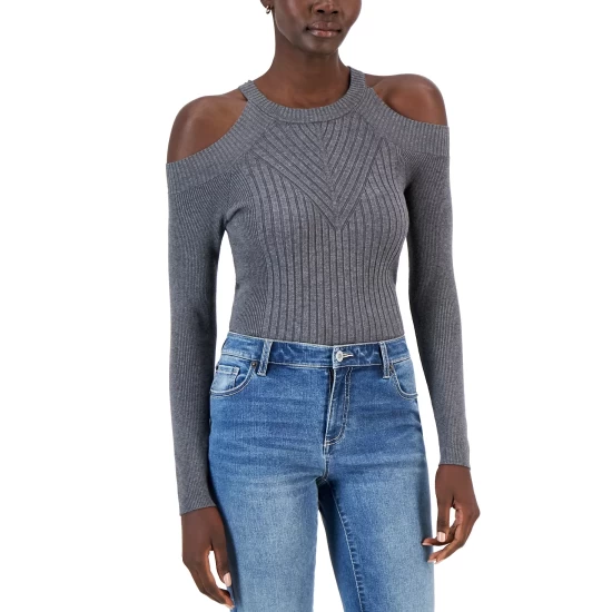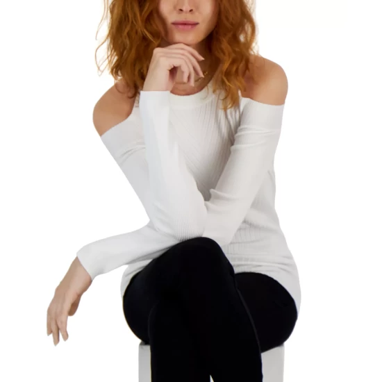 - Cold-shoulder cutouts; ribbed