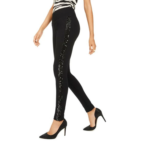 Sparkling sequins give a glamorous touch to these classic pull-on ponte pants from I.N.C. International Concepts.