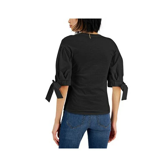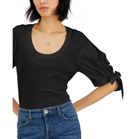 INC International Conceptsยฎ hits all the right style marks with this scoop-neck top designed with ties that fall from each cuff.
